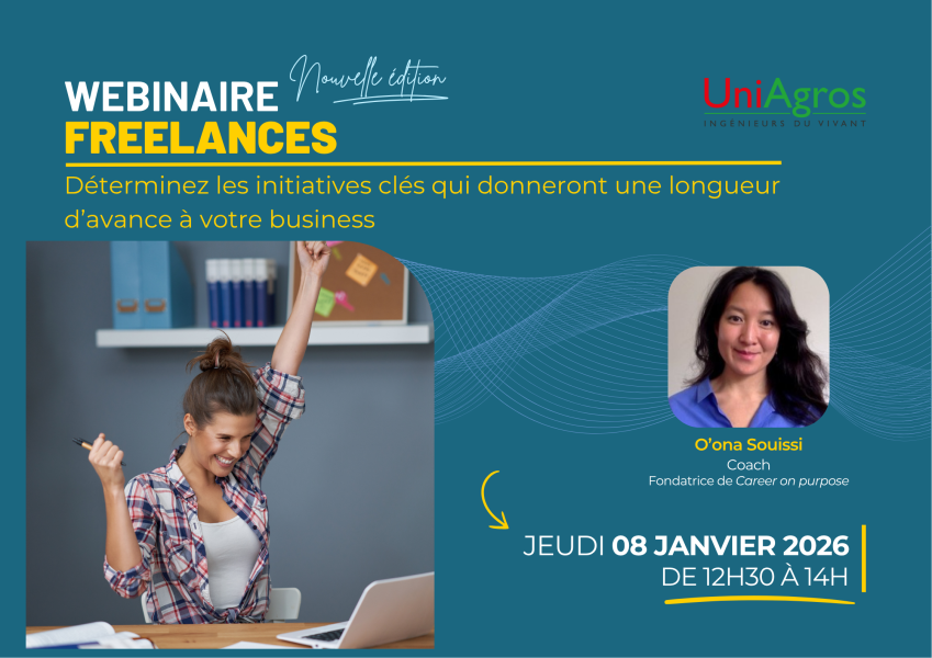 Si vous êtes freelance et que vous voulez identifier les quelques initiatives clés qui donneront une longueur d’avance à votre business, et si vous souhaitez pouvoir vous focaliser sur une vision claire et exécutable, rejoignez ce webinaire. Vous bénéficierez des conseils d'O'ona Souissi.