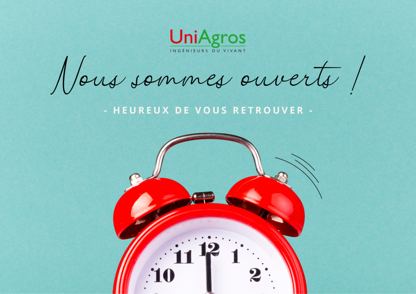 Bonjour, nous espérons que vous passez un bel été. Fin de la pause estivale pour l'équipe UniAgros. Nous sommes heureux de vous retrouver.