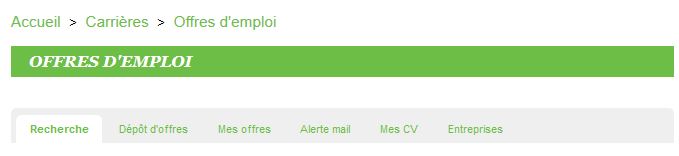 Se rendre sur l'onglet offre d'emploi Accueil > Carrières > Offres d'emploi
